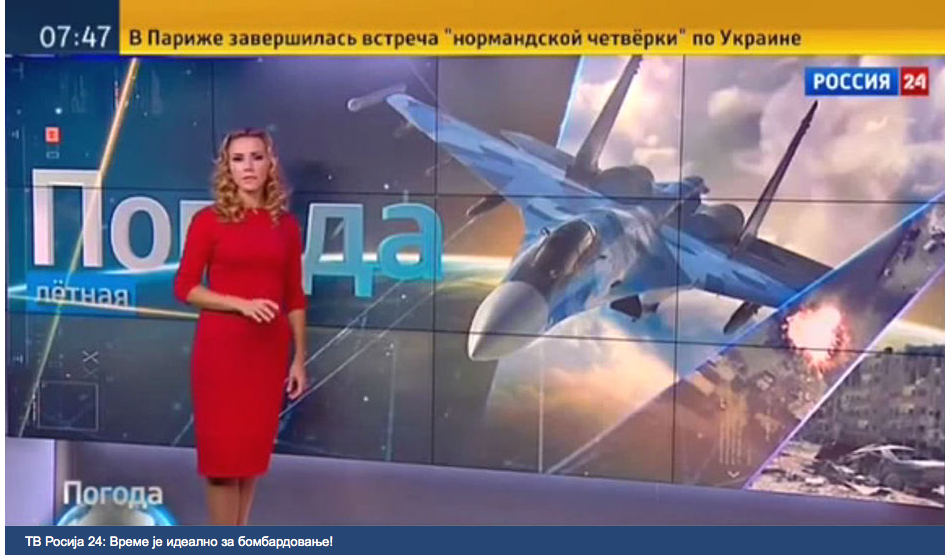Venäjän valtion omistaman uutiskanavan säätiedotuksessa analysoitiin lokakuussa hävittäjäkoneiden lento-olosuhteita.