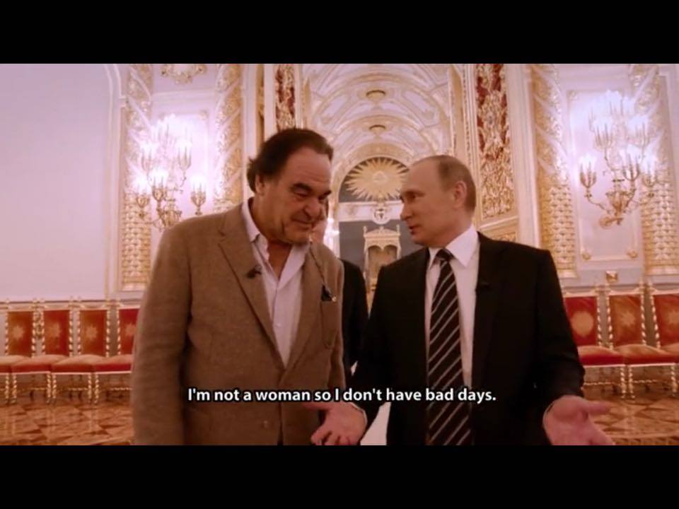 Kuinka sopivasti Stone nyhtää tietoja: Putin on paitsi suurvaltajohtaja myös isoisä. Tästä ei Venäjällä ole puhuttu. Mikä on amerikkalaiselle sallittua, ei ikinä olisi mahdollista venäläiselle ohjaajalle. Lapsenlapsista puhuminen on pienoinen sensaatio ja totta onkin, että jos eeppisen Leviathan-elokuvan ohjaaja Andrei Zvjagintsev puhuisi samalla tavalla Venäjästä kuin Stone puhuu Yhdysvalloista, meillä olisi edessämme jotain ennen kuulumatonta.
