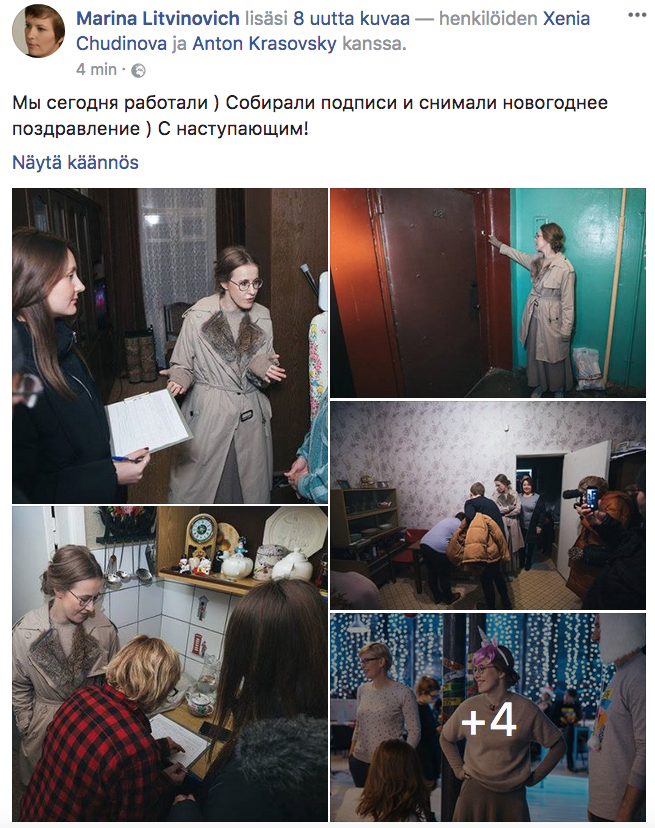Ehdokas Ksenja Sobtšak keräämässä allekirjoituksia. (Kuva vaalikampanjasta Marina Litvinovitšin Facebook-sivulta.)