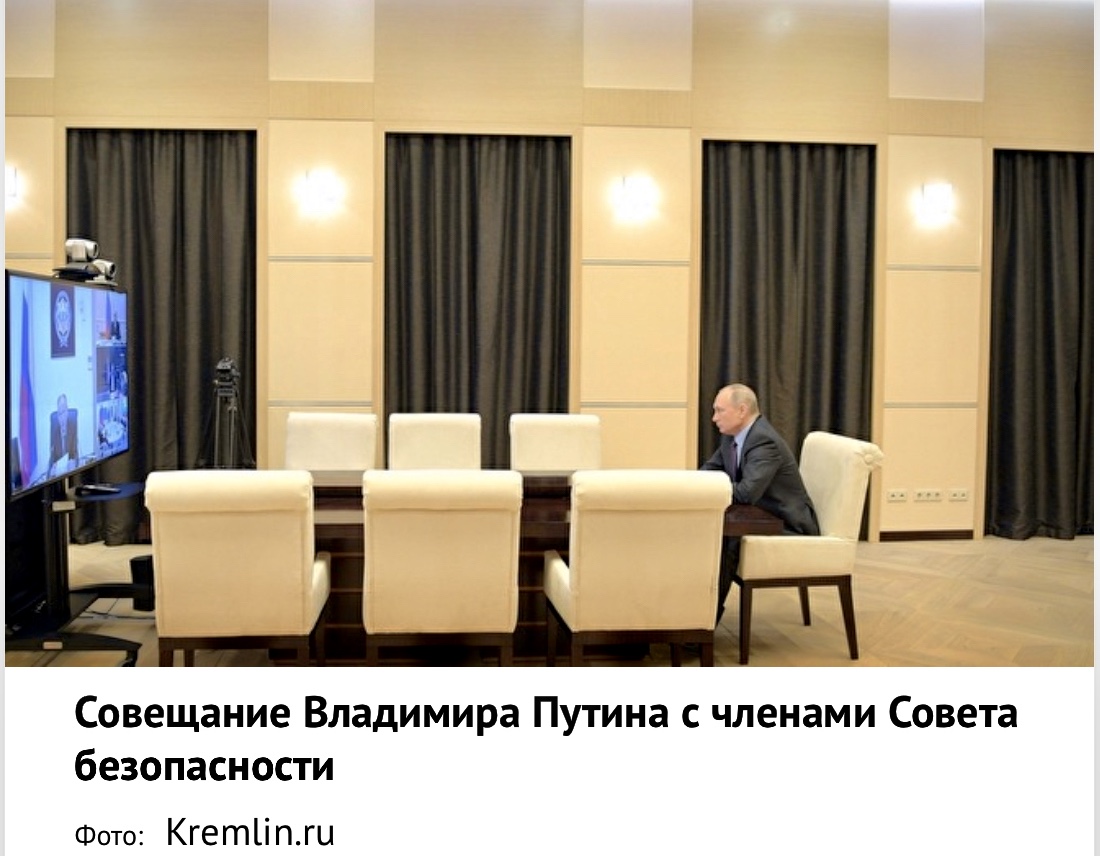 Presidentti Vladimir Putin koukoustaa Venäjän turvallisuusneuvoston kanssa.