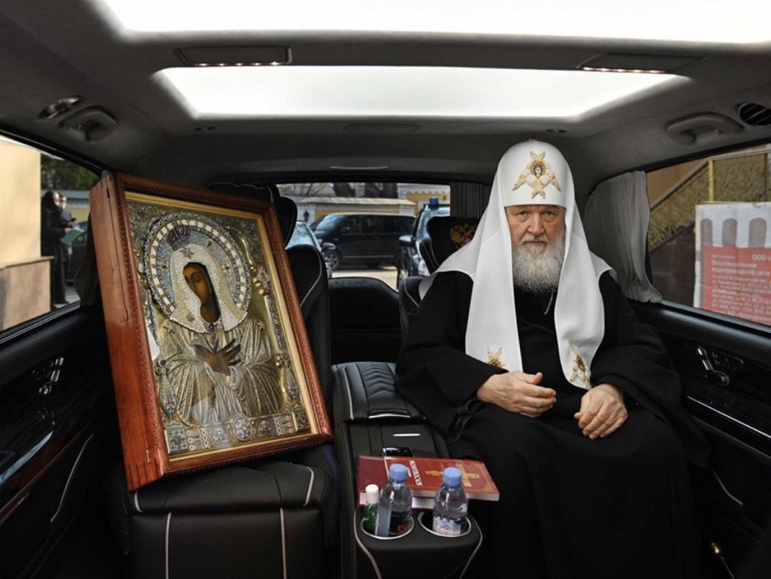 Patriarkka Kirill kiersi autolla pyhän ikonin kanssa Moskovassa.