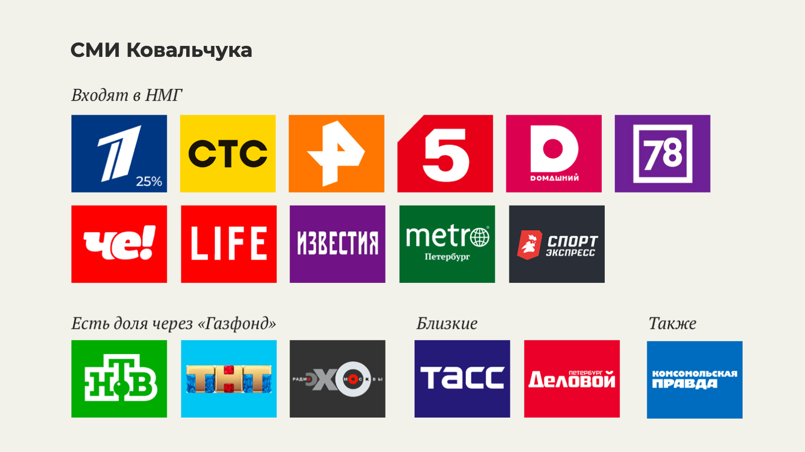 Kovaltšukin ryhmään kuuluu merkittävä osa mediasta