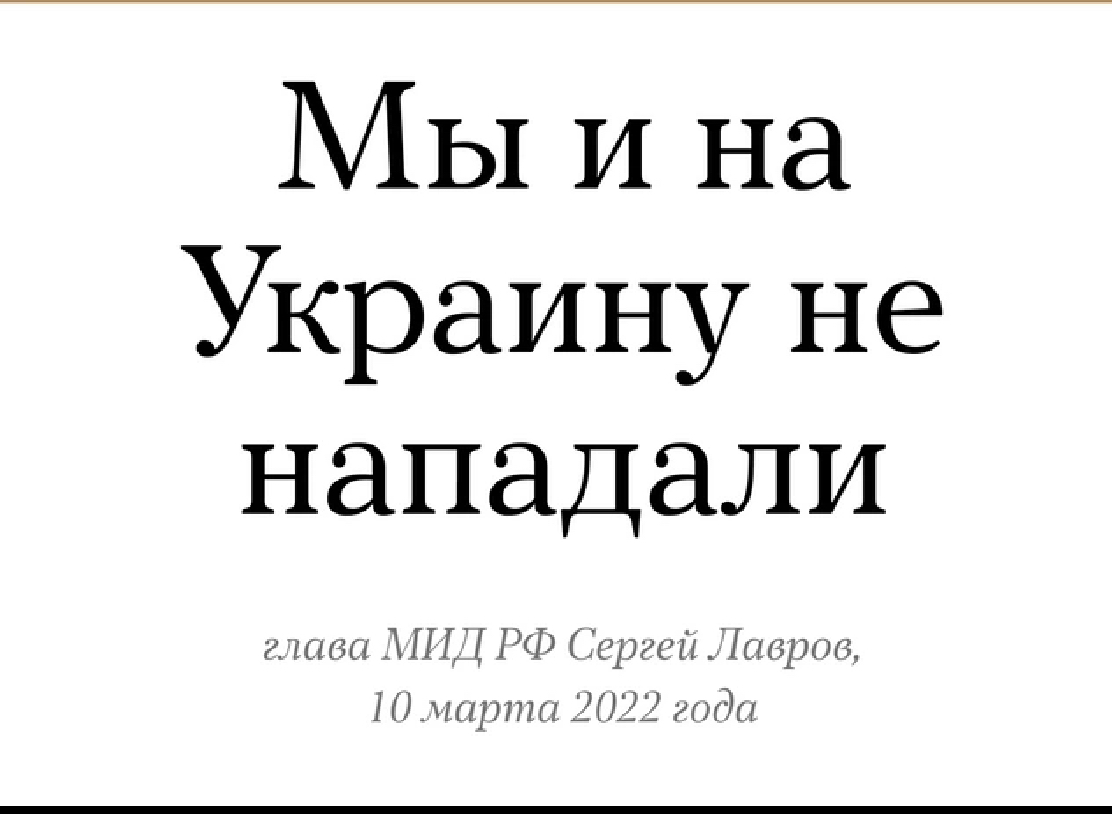 Emme hyökänneet Ukrainaan”, vastasi Venäjän ulkoministeri Sergei Lavrov tavattuaan Turkissa ukrainalaisen kollegansa Dmytro Kuleban ja vastatessaan toimittajien kysymykseen siitä, minne Venäjä on seuraavaksi hyökkäämässä.