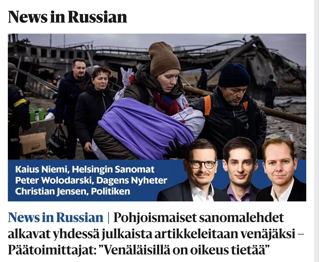 Vast’edes miljooonat venäjänkieliset saavat seurattavakseen pohjoismaista journalismia, joka on tuttua kollegoille, mutta jota ei monessakaan mediassa ole ollut mahdollista tehdä.