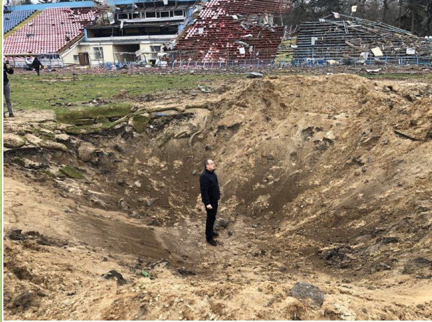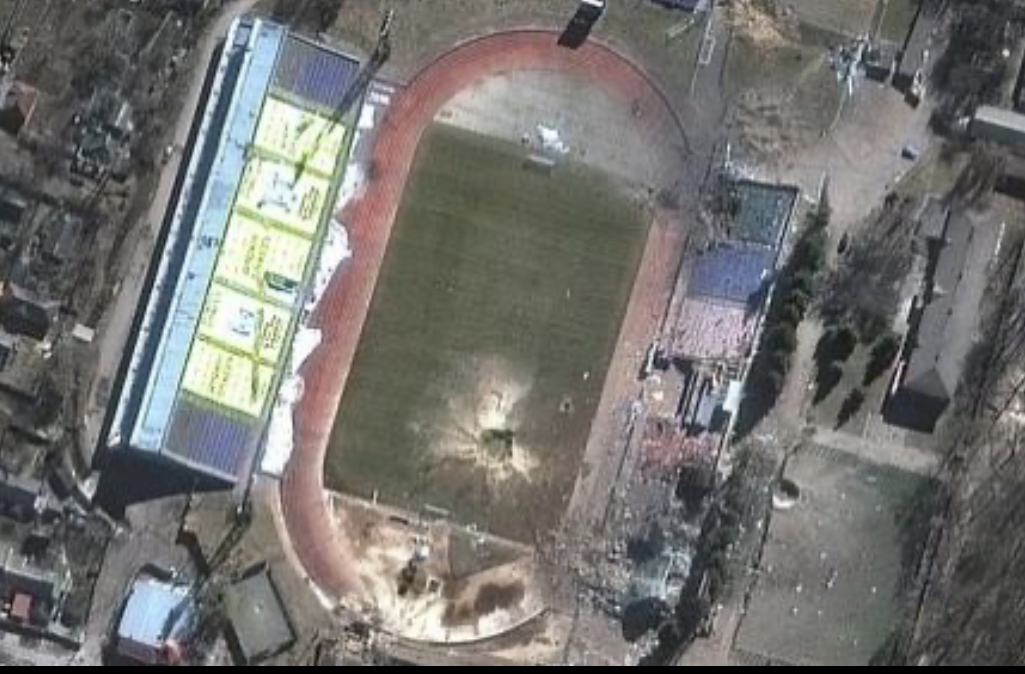 Ensimmäiselle ihmiselle avaruudessa nimetty jalkapallostadion sai siipeensä yhdessä ohjusiskussa maaliskuussa.