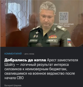 ”Ivanovin pidätys on ennen kaikkea markkinoiden uudelleenjakoa. Hän ei valvonut vain rakentamista, vaan sotilasurakoita. Nämä ovat suuria ja maukkaita kaikkein maukkainta ja suurinta. Mutta lisäksi tämä on tietysti erittäin vakava poliittinen ja isku Šoigun ryhmälle”, kertoo eräs hallituksen virkamies Moscow Timesille.